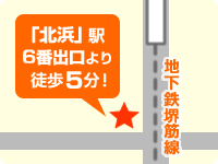 6番出口を出て、堺筋を南へ約5分歩いてください。